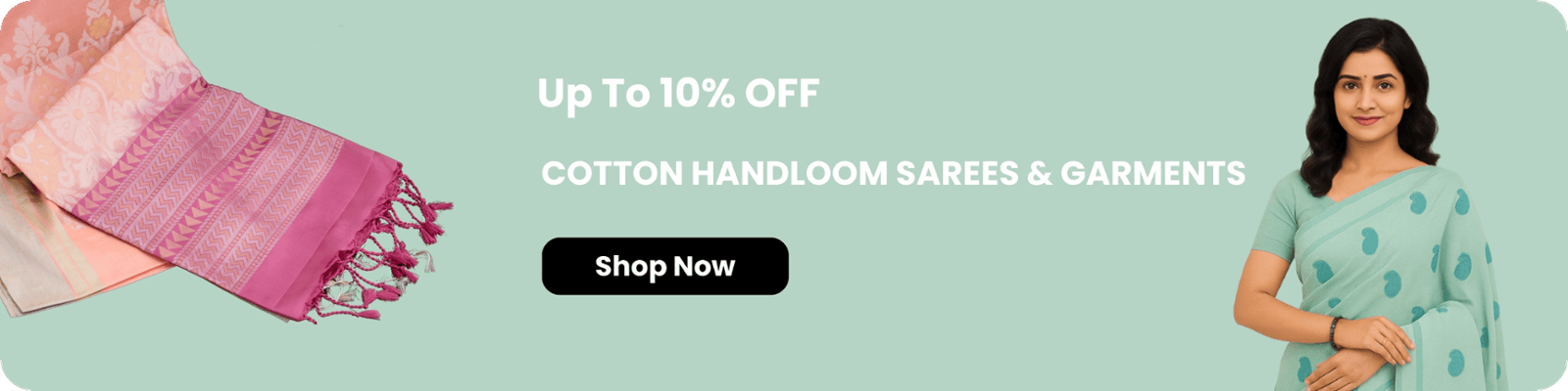 Material: Pure cotton • Length x Width: 5.5 x 1.13 meters (44 inches) • Warp x Weft: 80s x 80s cotton • Blouse Piece: Not Available • Premium-Quality Cotton Used • 100% Natural.
